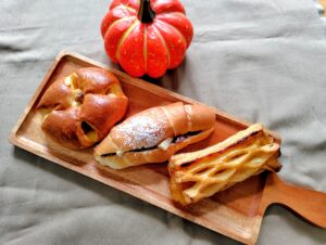 秋です。パン職人の創作意欲が掻き立てられる季節です 。ご飯も美味しいけど スイーツ好きには代表的な、芋・栗・南瓜の新商品はたまらない季節ですよね。落語にも「芝居、こんにゃく、芋、蛸、南瓜」とでてくるほど、江戸時代から庶民的で保存がきいてかつ皆に好まれてきたお野菜ですもんね。