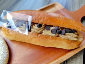 ホイップの甘さ控えめだけど、ふんわり空気を含んでいるので口の中で転がりだすチョコチップがカリカリしてとってもオイシイ。カフェクリームが中までぎっちり入っているので、あふれるクリームとチョコチップだけを食べていても甘すぎずもたれません。