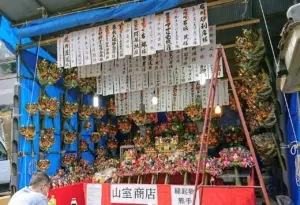 お酉さま(市守大鳥神社)に詣でるためにお参りの列に並ぶと、熊手たくさん売っています「パパパン!パパパン!パパパンパンッ!!」と威勢の良い掛け声と手拍子があちらこちらで聞こえてきて、大人もワクワクするし、ついつい通りにある出店覗いちゃうんですよね~。
